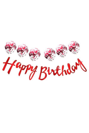 Parti Sürprizi Metalize Happy Birthday Kırmızı Banner Set