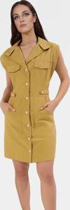 Dokuma Gabardin Mini Elbise Kisa Kol Düğmeli %Pamuk Yazlık Dayanıklı Malzeme