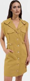 Ersefa Dokuma Gabardin Mini Elbise Kisa Kol Düğmeli %Pamuk Yazlık Dayanıklı Malzeme