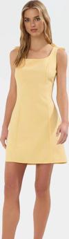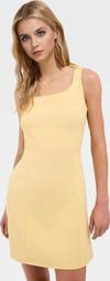 Bu sarı mini elbise, yaz aylarının şıklığına ve rahatlığına uygun, mükemmel bir seçimdir. A kesim tasarımı vücut hatlarınızı güzel bir şekilde ortaya koyarken, fiyonk detayı elbiseye feminen bir hava katıyor. Nefes alabilen ve rahat dokuma kumaştan üretilen elbise, gün boyu konfor sağlar.