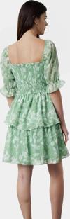 Elbisenin dikkat çekici özelliği, belden açılan eteğidir. Bu detay, hem rahat hareket etmenizi sağlıyor hem de zarif bir siluet oluşturuyor. Elbisenin ön boyu 90 cm'dir. Carmen yakası ve gipeli detayı, elbiseye şık bir görünüm kazandırıyor. Kolay bakım gerektiren kumaşı sayesinde, yazın pratikliğini de yakalıyor. Makinede yıkanabilir özelliği, kullanım kolaylığı sağlıyor.