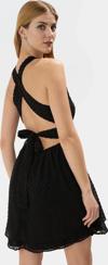 Ersefa Dokuma Şifon Mini Elbise Puantiyeli Desen Boyundan Bağlamalı Yaka Seçkin Malzeme Konforlu Kesim