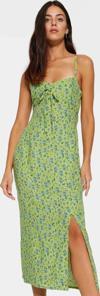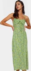 Yüksek kaliteli viskoz kumaş, yumuşak dokusuyla teninizde harika bir his bırakır. A-line kalıbı her vücut tipine uyum sağlayarak kusursuz bir görünüm oluşturur. Çiçekli desen, elbiseye romantik bir hava katarken, lacivert rengi şıklığıyla göz kamaştırır. Kolsuz ve astarsız tasarımıyla sıcak havalarda serin ve rahat kalmanızı sağlar. Cut out ve volan detayları ise elbiseye hareketlilik ve feminen bir dokunuş katar.