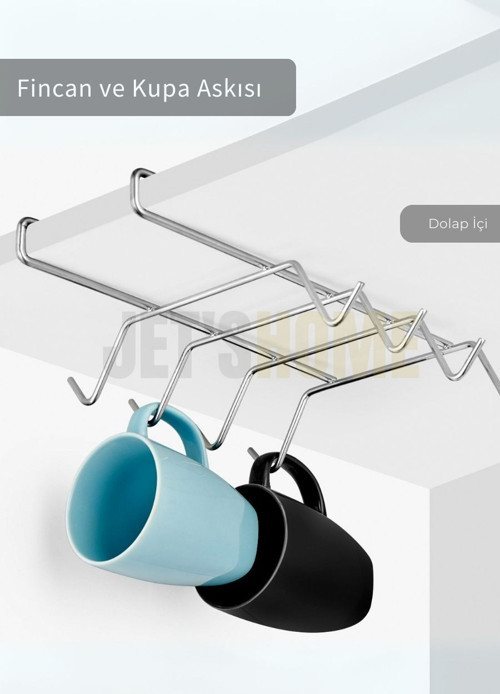 Dolap içi fincan ve kupa askısı, mutfakta alan tasarrufu sağlamak ve fincan/kupalarınızı düzenli bir şekilde saklamak için oldukça kullanışlı bir üründür. Paslanmaz çelikten üretilmiş gri renkli bu askılar, hem dayanıklılık hem de şık bir görünüm sunar.