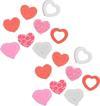 Paket içerisinde farklı renklerde, boyutlarda ve desenlerde kalp eva stickerlar bulunmaktadır.