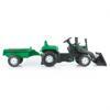 Pedallıdır, arkasında römorku vardır, kornalıdır ve kutu içindedir.