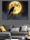 Dolunay ve Karga Dekoratif Kanvas - Mdf Ahşap Tablo