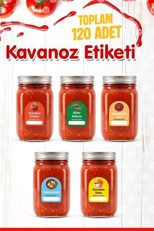 Tuğset Etiket Domates Biber Salça Kavanoz Etiket Sos Etiketleri, Menemenlik Kahvaltılık Sos Etiket 3,5x4,5 120 Adet-T1534