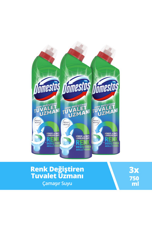 Domestos Tuvalet Temizleyici Renk Değiştiren Tuvalet Uzmanı Kireç Çözücü 750 Ml 3 Adet