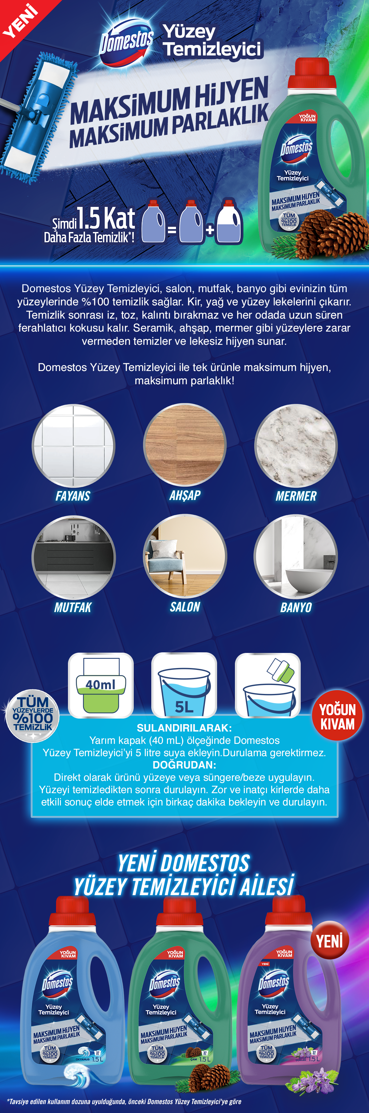 Domestos Yüzey Temizleyici Çam 3 x 1500 ML