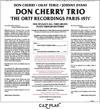 Caz Plak Don Cherry, Okay Temiz, Johnny Dyani - Don Cherry Trio - The ORTF Recordings Paris 1971 (Avrupa Edisyonu) Plak