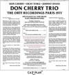 Caz Plak Don Cherry, Okay Temiz, Johnny Dyani - Don Cherry Trio - The ORTF Recordings Paris 1971 (Türkiye Edisyonu) Plak