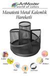 ArtMaster Döner Masaüstü Düzenleyici Organizer Metal 1 Adet Fileli Kalemlik Siyah Renk Hareketli Kalemlik 360 Derece Döner