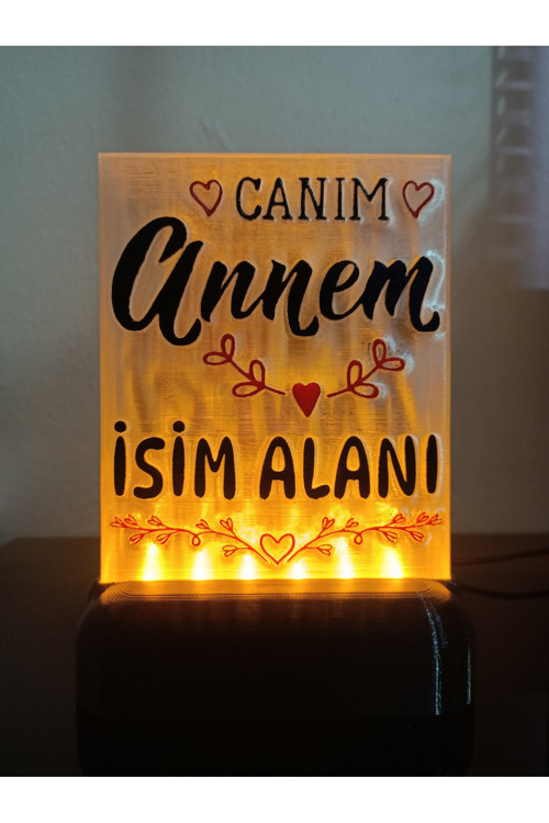 Anneye Özel Hediyelik Kişiselleştirilebilir Dekoratif Led Lamba M3 Amber Işıklı