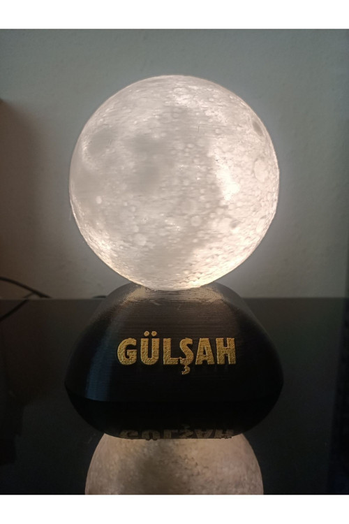 Dönüşüm Atölyesi Dekoratif Ay Lambası Isme Özel Üretim 16Cm - Kablolu Adaptörlü Günışığı Led Işıklı - Hediyelik
