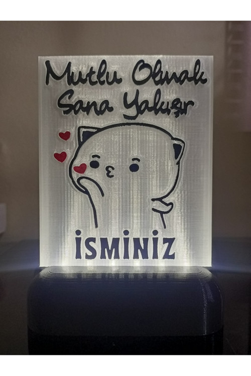 Dönüşüm Atölyesi Kişiye Özel İsimli Hediyelik Kablolu Led Lamba - M19 - Mutlu Olmak Sana Yakışır - Beyaz Işıklı