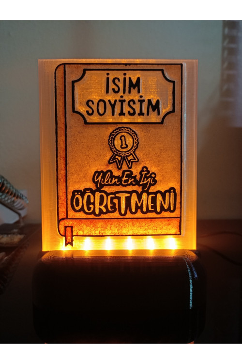Dönüşüm Atölyesi Öğretmene Hediyelik Isimli Dekoratif Led Lamba M6 - Kablolu Adaptörlü - Amber Led Işıklı