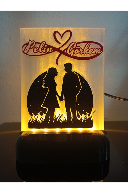 Dönüşüm Atölyesi Sevgiliye-Eşe Özel Isimli Hediyelik Dekoratif Led Lamba Model5 - Kablolu Adaptörlü - Amber Işıklı
