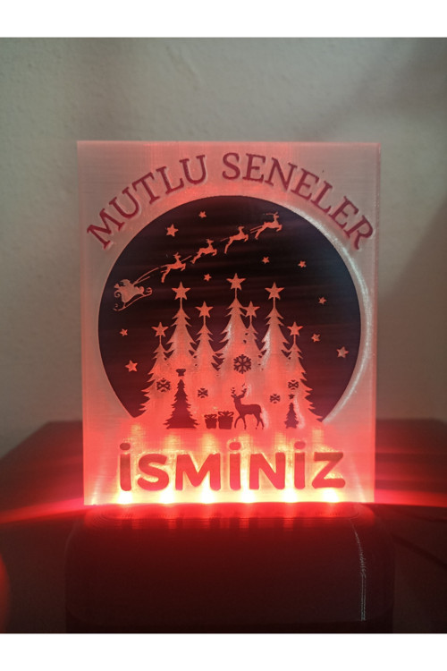 Dönüşüm Atölyesi Yılbaşı Hediyesi Isme Özel Dekoratif Led Lamba M2 - Noel Manzara - Kablolu Adaptörlü - Kırmızı Işık