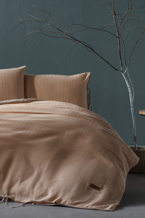 İpliği Boyalı Ahenk Nevresim Takımı Çift Kişilik - Bej Renk Bej Kumaş Özelliği %80 Pamuk %20 Pes Set İçeriği Torba Nevresim 200 x 220 (1 Adet)