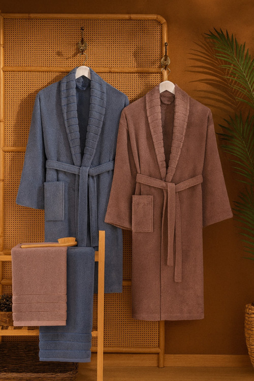 - Set içeriği 2 adet bornoz 2 adet havlu olmak üzere toplam 4 parçadan oluşmaktadır.