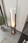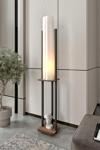 Teknik ölçüler genişlik: 24 cm, derinlik: 24 cm, yükseklik: 148 cm, raf aralığı: 60 cm, raflar 24cmx24cm, abajur çapı 17 cm, yüksekliği 80 cm.