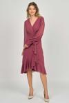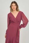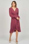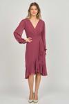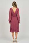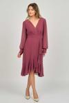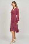 Detay: Şifon kol, valonlu, kraveze yaka, astarlı abiye elbise;