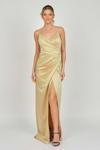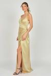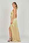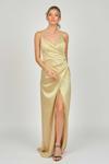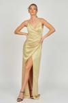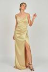 Detay: Derin yırtmaçlı, anvelop, askılı, astarlı abiye elbise;