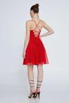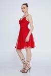 Detay: Hafifliğiyle dikkat çeken şifon kumaştan tasarlanan kısa abiye elbise, kruvaze yaka detayıyla zarif bir siluet sunar. Kloş kesimi hareketli bir duruş kazandırırken iç astarı sayesinde konforlu bir kullanım sağlar. Gizli fermuar kapaması şıklığı tamamlayan pratik bir detay olarak öne çıkar. Yaz davetleri, nikah törenleri ve mezuniyet geceleri gibi özel anlar için ideal bir seçimdir;