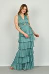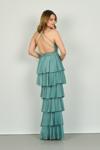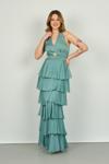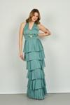 Detay: Boyundan bağlamalı, sırt detaylı, uzun abiye elbise;