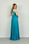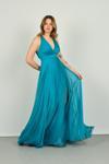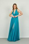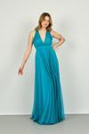 Detay: Boyundan bağlamalı, sırt detaylı, uzun abiye elbise;