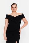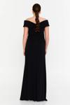 Detay: Ön-arka dekolte detaylı, derin yırtmaçlı, uzun abiye elbise;