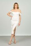 Detay: Düşük omuz, kolları püskül detaylı, astarlı abiye elbise ;