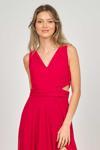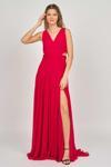 Detay: Derin yırtmaçlı, sırt detaylı, astarlı abiye elbise;