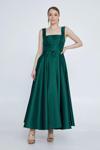Detay: Sırt dekolteli, bilek boy, saten, astarlı abiye elbise;