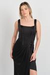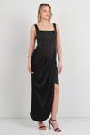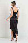 Detay: Modern şıklığın zarif bir yansıması olan bu saten midi abiye elbise, geniş askıları ve kare yaka detayıyla güçlü bir siluet sunarken, korsajlı yapısı vücut hatlarını kusursuzca vurgular; belden aşağısı drapeli ve asimetrik etek kesimi ise hareketli bir zarafet katarken, iç astarı ve gizli fermuar kapamasıyla hem konfor hem de pratiklik sağlar. Özellikle nişan, mezuniyet ya da özel davetlerde stil sahibi bir görünüm arayanlar için ideal bir tercihtir;