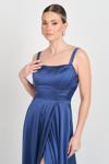 Detay: Mini astarlı, fermuarlı, çift cepli, derin yırtmaçlı, kalın askılı, kare yaka, maxi boy abiye elbise, zarif ve modern tasarımıyla özel davetlerde şıklığı ön plana çıkarır. Kare yaka detayı sofistike bir görünüm sunarken, kalın askılı yapısı rahat ve dengeli bir duruş sağlar. Derin yırtmaç feminen ve cesur bir dokunuş eklerken, mini astarlı yapısı konforlu bir kullanım sunar. Fermuar kapaması pratiklik sağlarken, çift cepli tasarım işlevsellik sunar. Maxi boy kesimi uzun ve akıcı bir siluet yaratarak hem klasik hem de çağdaş bir görünüm oluşturur;