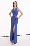 Detay: Krep kumaştan tasarlanan, V yaka ve drapeli üst bölümüyle zarif bir siluet sunan bu maxi abiye elbise; beldeki sabit taş detayı, derin yırtmacı, astarlı yapısı ve fermuar kapamasıyla şıklığı ön plana çıkarır. Gecenin yıldızı olmak isteyenler için sofistike bir tercihtir;