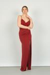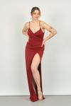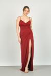 Detay: Derin yırtmaçlı, drapeli, uzun, astarlı abiye elbise;