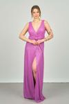 Detay: Derin V yaka, pullu, uzun, astarlı abiye elbise ;
