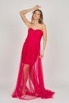 Detay: İçi kısa etek dışı uzun tül, astarlı abiye elbise;