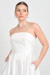 Detay: Straplez yaka, geniş etekli, uzun abiye elbise, zarif duruşu ve etkileyici tasarımıyla özel davetlerde şıklığı ön plana çıkarır. Straplez kesimi omuzları ön plana çıkarırken, geniş etek yapısı akıcı bir siluet oluşturur ve hareket özgürlüğü sağlar. Uzun formu sayesinde hem klasik hem de modern bir görünüm sunan bu abiye elbise, özel günlerde stilinizi tamamlamak için ideal bir tercihtir;