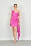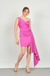 Detay: Tek omuz, saten, astarlı abiye elbise;