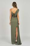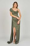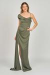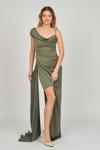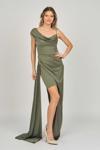 Detay: İç kısmı mini etek, derin yırtmaçlı, saten, astarlı abiye elbise;