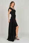 Los Banditos Diyagonal Kesim Ön Katlı Siyah Bol Şık Elbise - Image 1