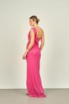 Detay: Tek omuz, belde demir tokalı, beli drapeli, derin yırtmaçlı, parlak kumaş, astarlı, uzun abiye elbise;