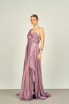 Detay: Tek omuz, fırfırlı, astarlı, uzun abiye elbise;