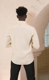 DeepSEA Erkek Beyaz Likralı Kumaşı Fitilli Slim Fit Uzun Kollu Gömlek 2500805 - Image 1