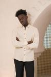 Dagoster DMG23-199598 Ekru Ottoman Örme Apaj Yaka Oversize Kalıp Kısa Kol Erkek Gömlek - Image 1