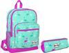 Coral High 23111 Dört Bölmeli İlkokul Çantası ve Üç Bölmeli Kalemlik Seti - Yeşil Flamingolar